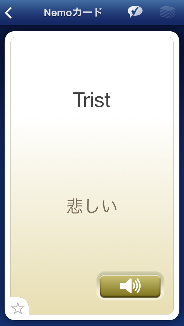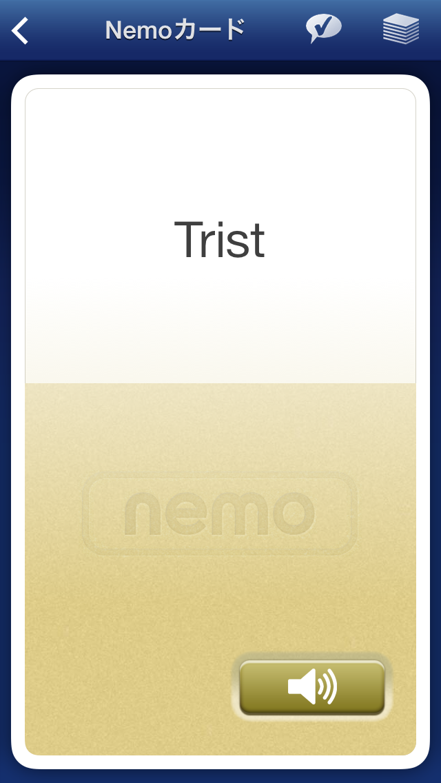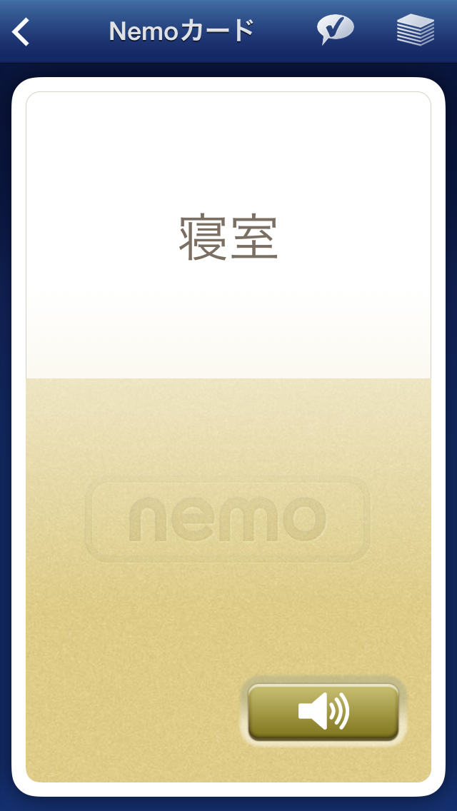 めくると、日本語が出ます。スピーカーを押すとネイティブの発音が聞けます。