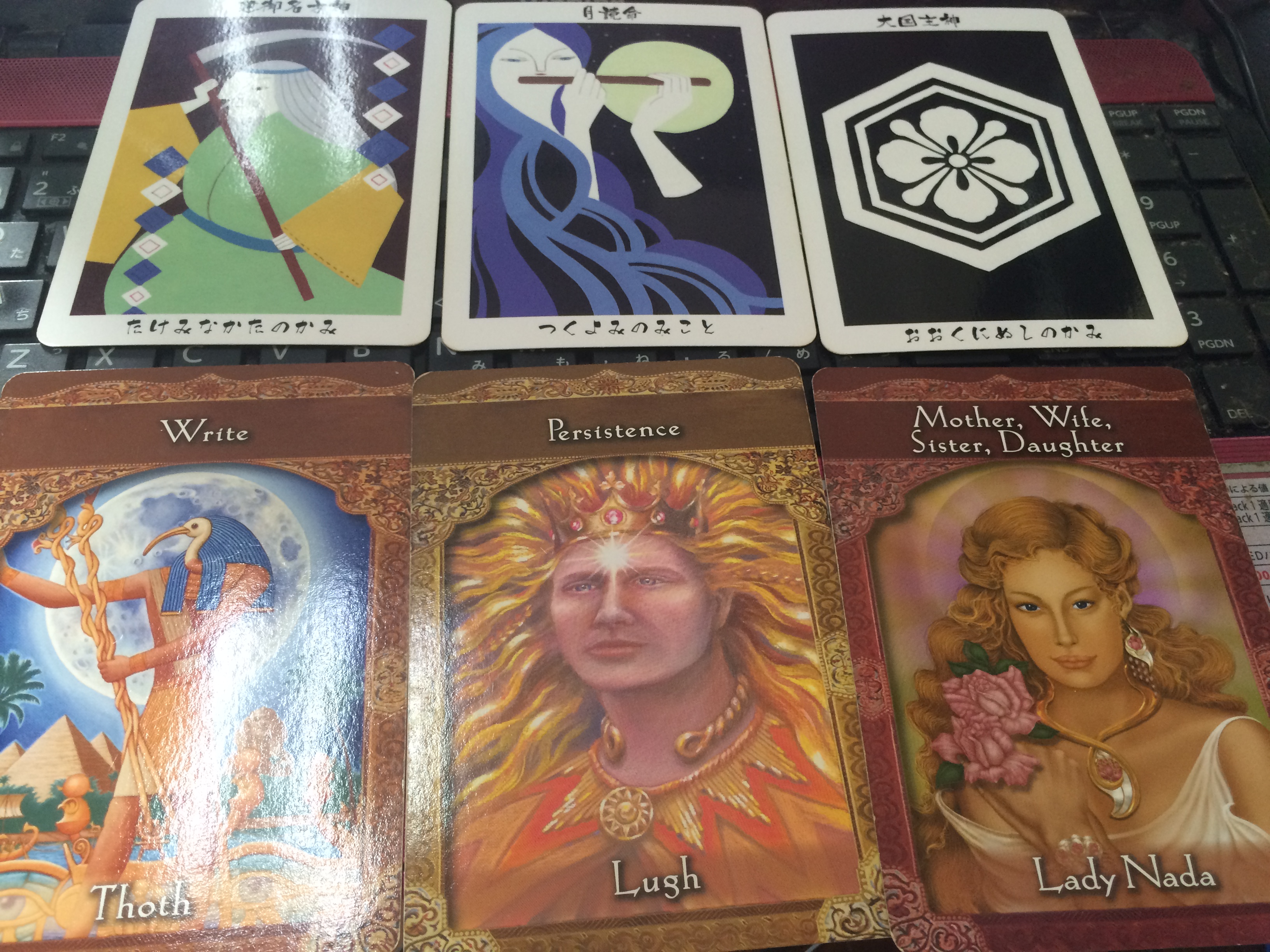 「日本の神様カード」は自分のやりたいこと、目指したいことのための行動をしろって感じですし、「アセンデットマスターカード」も、「書くこと」に「集中しろ」と出てますし、上の方針は間違ってなさそうです。