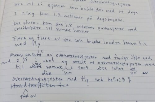 - 自分の思ったことをノルウェー語で短い作文にしてみる(「今日は雨が降っている」程度の短い文)