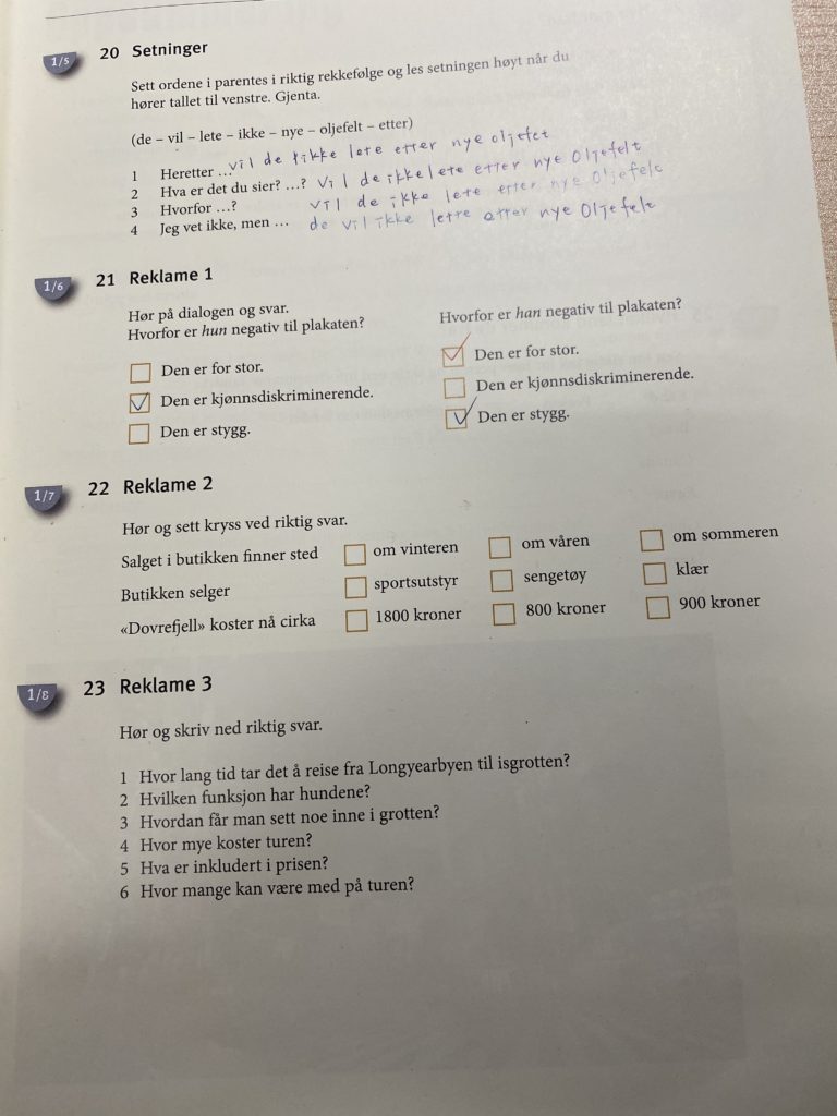 『Her På Berget』、以前使っていた2008年度リリース版を終えて、今は昨年の今頃に購入した2016年版を使っています。Bergenstestの対策として『Her På Berget』をやって合格したという人がいて、「そりゃ、テキスト難しいからね~、しっかり短期間で出来ればテストにぴったりだよね」と思っていましたが、思ってた以上にBergenstest向きで、かつ、2008年版とはレベルが違ってました。