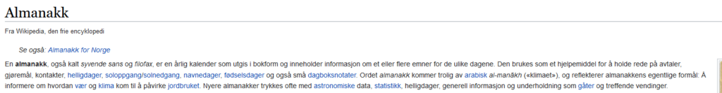 そして、もう一つがfilofax。ノルウェー語の先生は、大きい手帳はfilofaxと呼んでいたとのことでした。これはメーカー名ですけど、そのままシステム手帳の代名詞として使われている模様。更にalmanakkというのがあり、これは元々、農業などで使われた日ごとに重要な日が示してあるものだったそうです。(いつ月が長くでるとか…、日本だと昔生活に密着していたという意味では月暦とか、六曜とか、二十四季節が書いてあるとかでしょうか)。wikipediaを見ると…