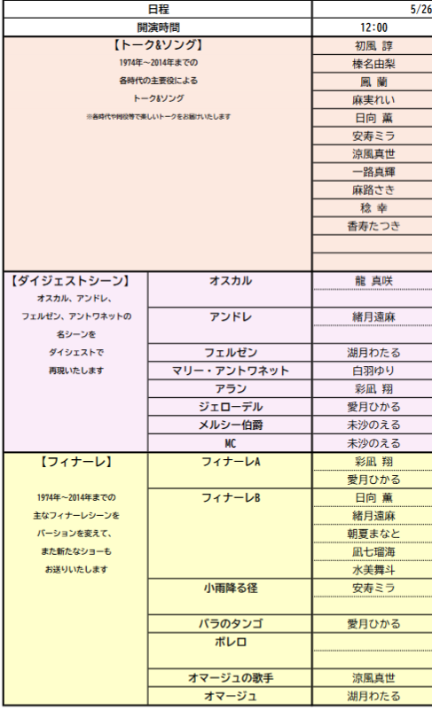5月26日に行われた「ベルサイユのばら50」東京公演昼の部へ行ってきました。出演者はこんな感じ。
